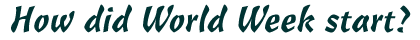 World Week includes fun and educational activities designed to help people understand what life is like for people suffering from disease, abuse, hunger, discrimination and environmental devastation. There are free leader's guides for each World Week activity that explain how to organize the event. There is also a DVD series in development.